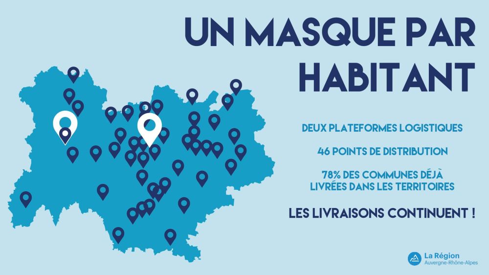 Pour protéger les habitants d’Auvergne-Rhône-Alpes, la Région s’est engagée à fournir un masque à chaque habitant de nos territoires.